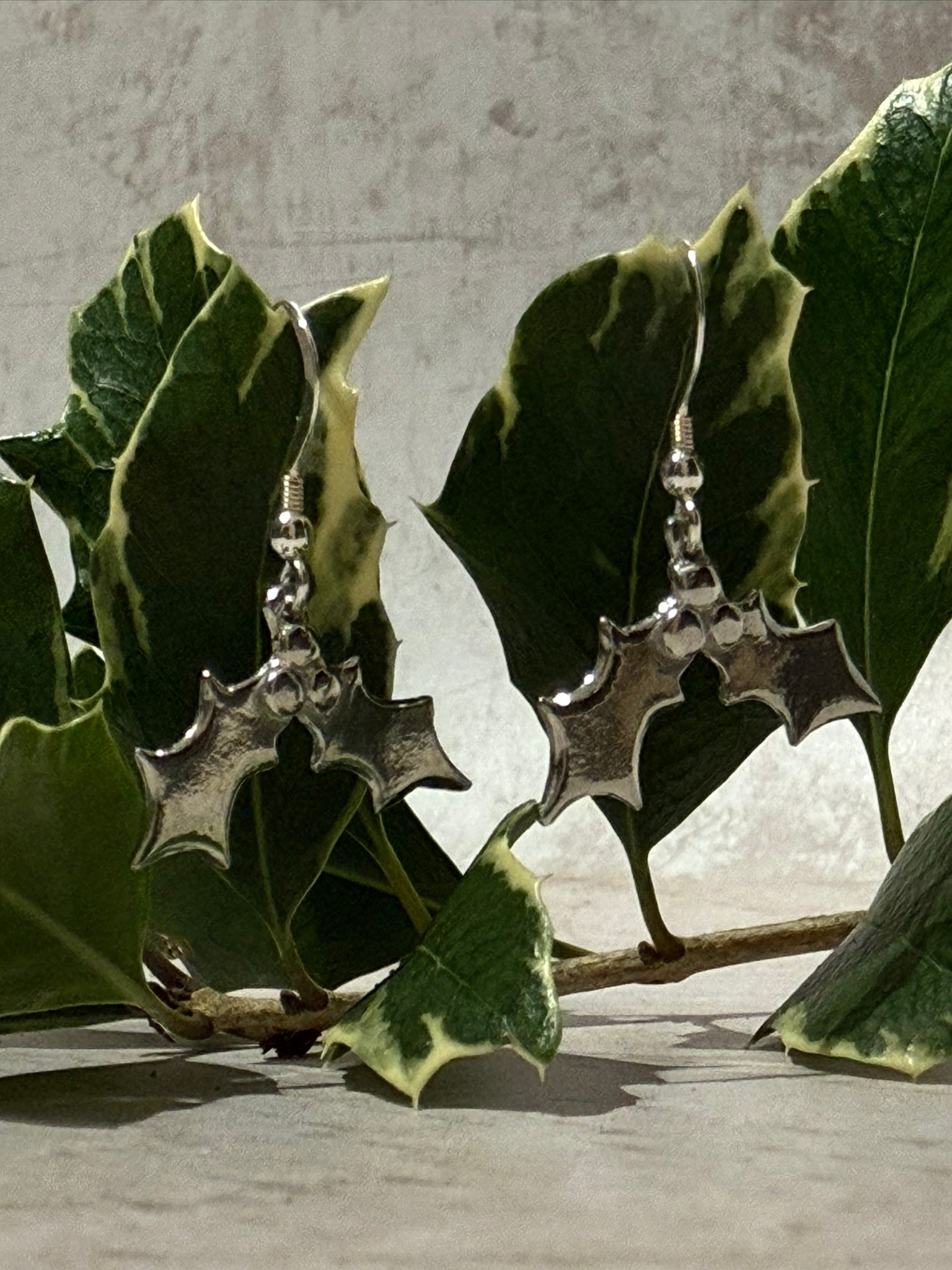 These elegant Holly Drop Earrings are crafted from pure Cornish tin and hang delicately from sterling silver ear hoops.